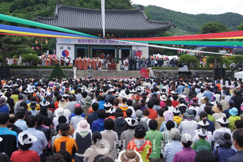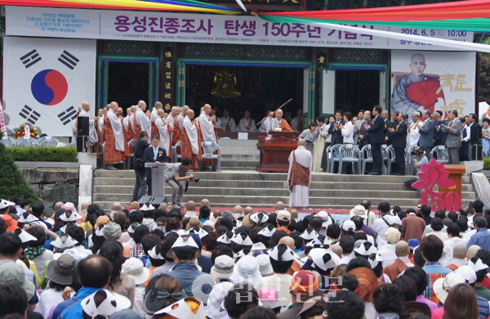 ¹ÎÁ·´ëÇ¥ 33ÀÎÀÇ ÇÑ ºÐÀÌÀÚ ±Ù¼¼ Çѱ¹ºÒ±³ Á¤ÈÀÇ ÃÊÁ¶ÀÎ ½Ã´ëÀÇ Å«½º½Â ¿ë¼º ½º´ÔÀÇ Åº»ý 150ÁÖ³âÀ» ±â³äÇϰí, ½º´ÔÀÌ ³²±ä À¯ÈÆ ½ÇÇöÀÇ È¸ÇâÀ» ¼±¾ðÇÏ´Â ¹ý¼®ÀÌ °ÅÇàµÆ´Ù.