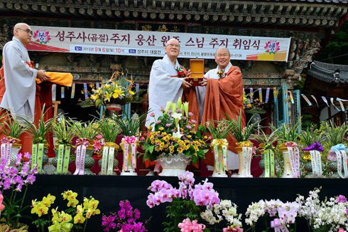 ÁÖÁö ÀÓ¸í ¹®Á¦·Î °¥µîÀ» ºú¾î ¿Ô´ø â¿ø ¼ºÁֻ簡 9¿ù 6ÀÏ ¼ºÁÖ»ç ´ë¿õÀü¿¡¼ ÁÖÁö ¿øÁ¾ ½º´ÔÀÇ ÃëÀÓ¹ýȸ¸¦ ºÀÇàÇß´Ù.